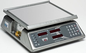* base em aço galvanizado, prato em aço inox medindo 25cm X 35cm, cobertura em plastico moldado, display de led luminoso.